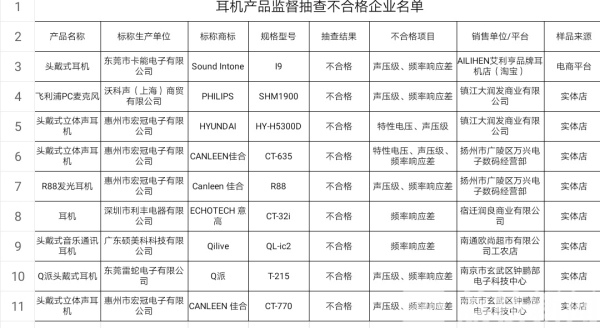 本次共抽查耳机产品28批次,其中在电商平台购样14批次、实体店购样14批次。合格19批次,合格率为67.9%。