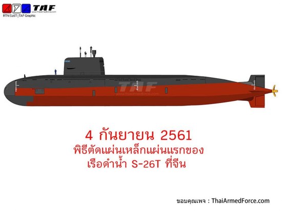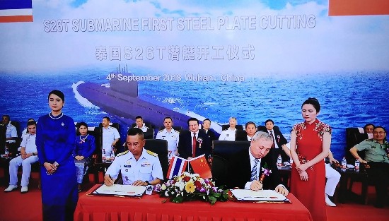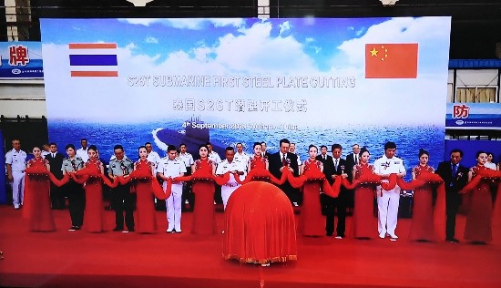 9月4日,中船重工武昌船舶重工集团有限公司武昌基地为泰国建造的S26T潜艇开工。中国船舶重工集团有限公司董事长胡问鸣、泰国海军司令纳里斯上将赴开工现场并致辞。