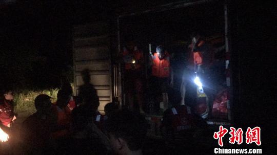 志愿者们深夜仍在为被困水中的灾民运送食品。志愿者提供 摄