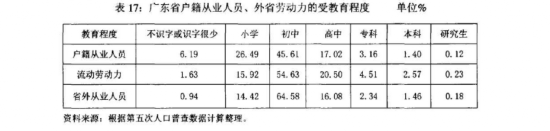 吴森富(2004)对“五普”数据统计发现,广东省户籍从业人员的平均受教育年限为8.47年,而流动人口为9.46年,其中省外流动人口为9.23年。因此,外省劳动力的流入不但带来了劳动力数量的增长,还提升了广东省从业人员的人力资本水平。据测算,1990-2000年广东省劳动结构效应对广东经济增长的贡献率平均达到13.08%,最大达到22.55%。