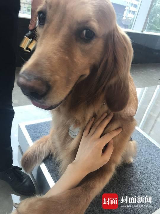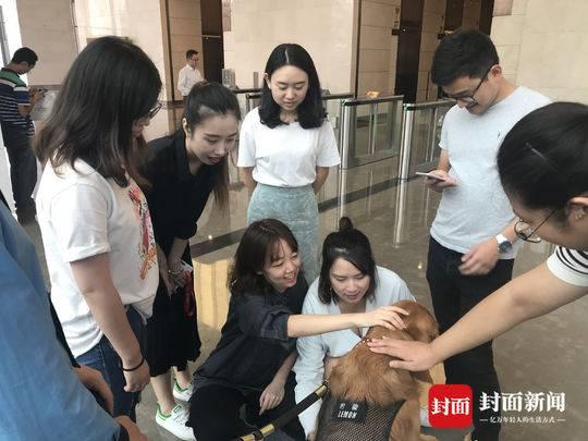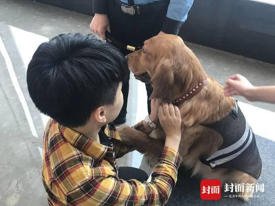 这只金毛叫“柠檬”,它们一家都是成都的网红。据工作人员说,它们在这儿已经有3年了,除了防暴犬的工作外,还肩负起为上班族放松减压的任务。