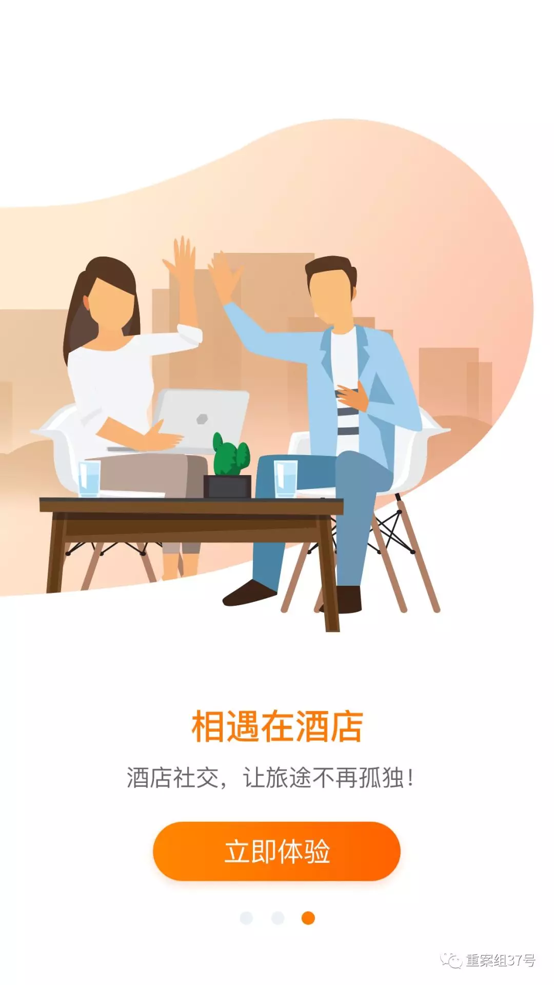重案组37号发现,在一款名为“趣住”App的打开页面中,出现一男一女坐在椅上、举手互相示意的动漫形象。页面上写道,“相遇在酒店。酒店社交,让旅途不再孤独。”