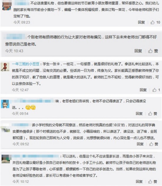 随着第34个教师节的临近,教师节是否要送礼引发广泛的讨论。