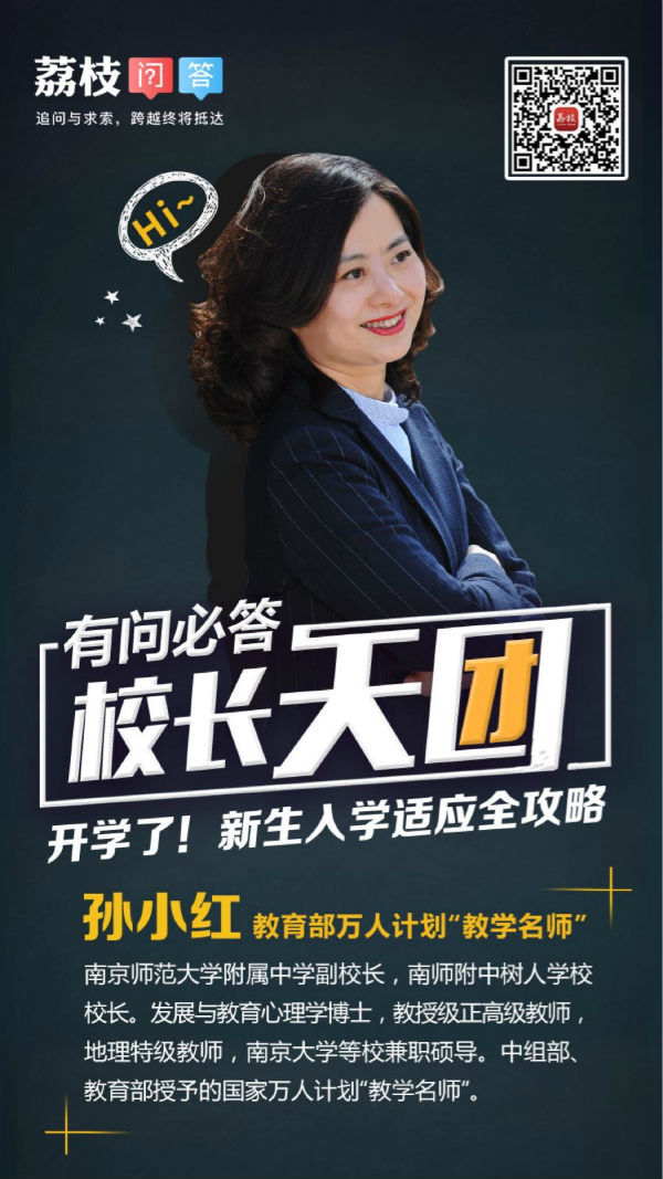 如果你也正在为孩子的成长问题感到彷徨、犹豫、纠结或迷茫,无论你的孩子是幼儿园新生、小学新生、初中新生还是高中新生,都可以来“荔枝问答”找“校长天团”帮忙解答!点此进入问答页面>>>