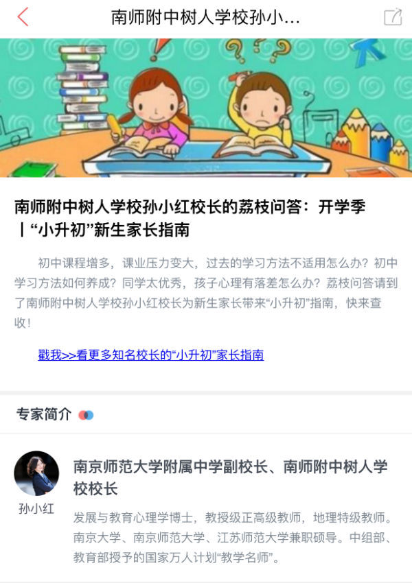 作为树人学校的校长,回答教育问题对孙小红来说是“驾轻就熟”的,然而她依然十分重视加入“校长天团有问必答”活动,考虑到此次问答主要面向手机客户端用户,孙小红校长决定改变以往作“长演讲”的习惯,以更凝练的方式为家长们准备更多实用的“干货”!