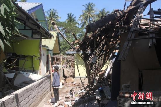 资料图:印尼龙目岛地震导致数千栋房屋损毁严重。 中新社记者 林永传 摄