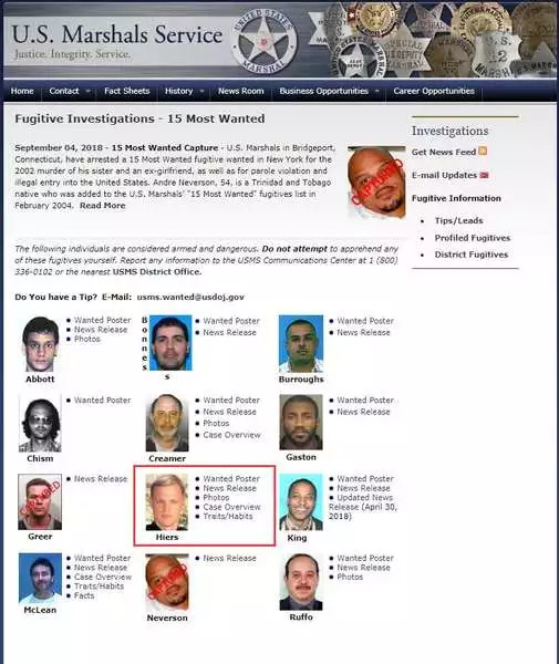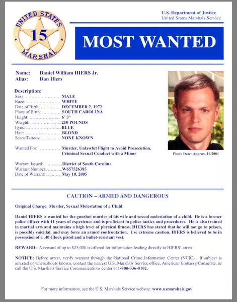 随后,美国司法部以涉嫌谋杀、性侵儿童的罪名对Daniel William Hires发起通缉。