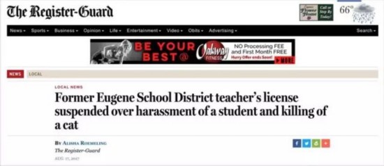2017年8月,美国一家地方报纸报道了俄勒冈州 Cal Young Middle School 一名叫做 Cody Loy 的教师,因为多年前曾骚扰一名15岁女生,而被吊销了教师执照。但现在 Cody Loy 在中国执教,聘用他的中国学校估计还不知道他在美国被吊销教师执照的事。