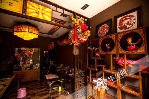 在古城街边的小店里,游客可以学习舞龙、学习扎龙,参与到铜梁龙的制作过程当中,还可以购买龙绣、龙雕等工艺品。