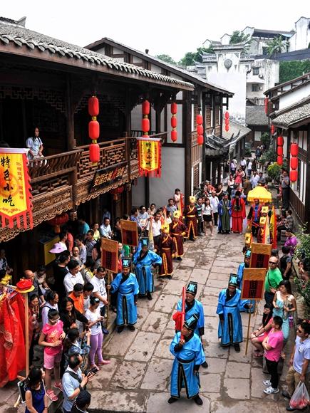 游在安居古城中,随处可见独具安居特色的民俗文化活动,在湖广会馆能欣赏到川剧、荷花龙、天后宫祭妈祖等民俗活动,古城中还有旱船、舞龙、舞狮、水云龙等表演应接不暇。