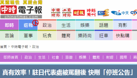 台媒讽刺“办事处”有效率(“中时电子报”截图)