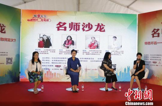 北京举办教师节“师爱无尘——新时代·好老师”庆祝活动。图为名师们探讨“师德不远——新时代的好老师如何定义”。 丁柏明 摄
