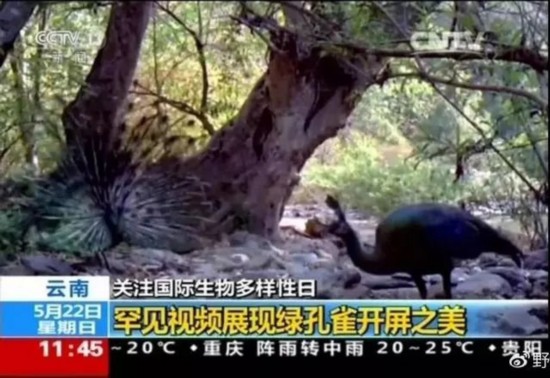 在戛洒江水电站淹没区拍到的绿孔雀 图源:野性中国