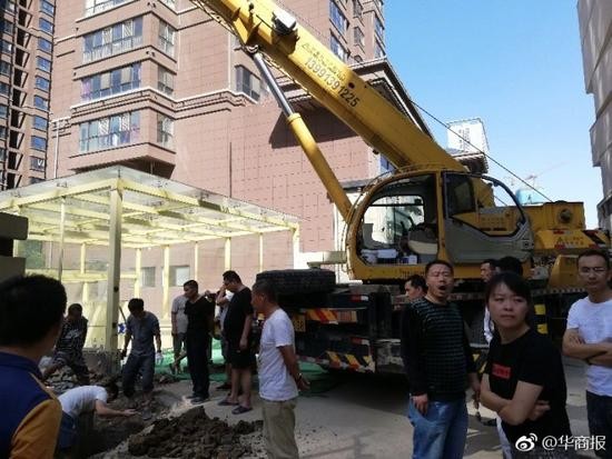 【西安一小区绿地被挖要建垃圾池 业主们要雇吊车将垃圾箱搬走】一周前,西安市高新区龙城铭园小区的业主们看见有人将原本的封闭墙护栏拆掉,开始进入绿地挖坑,业主们还以为小区要建景观水池,没想到最后看见一个大垃圾箱被拉进来埋进去。大家四处打听,才得知是开发商要建一个生活垃圾池,处理墙外商业楼餐饮店的垃圾。1500多户业主维权无效之下,自发筹钱雇来吊车,要将填埋好的大型垃圾箱搬走。对此,物业称:目前已经停止施工。开发商说如果能办下项目手续就施工,办不下就停止。
