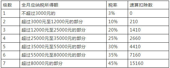 注意税率表里有一栏“速算扣除数”。速算扣除数是指为解决超额累进税率分级计算税额的复杂技术问题,而预先计算出的一个数据。