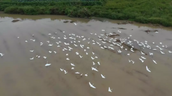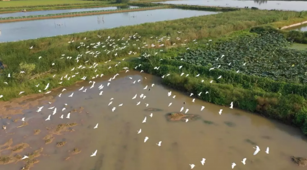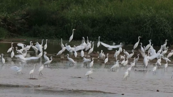 初秋时节,在江苏泗洪洪泽湖湿地近万只白鹭翩翩起舞、追逐嬉戏,给初秋的泗洪带来了勃勃生机。