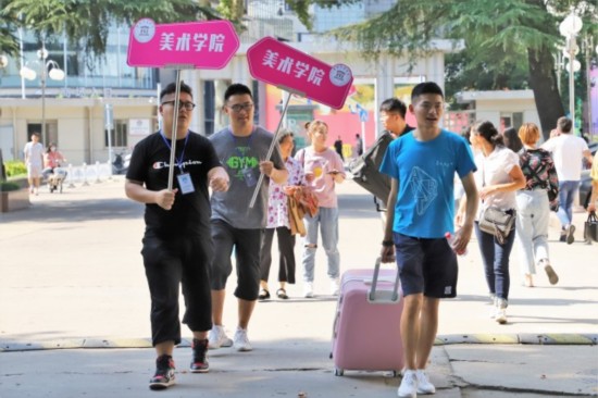(图为淮师美术学院新生开绿色通道 夏振华摄 )