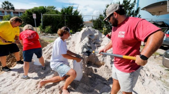 南卡罗来纳棕榈岛的居民们在沙袋里填满沙袋,为佛罗伦萨飓风到来做准备。