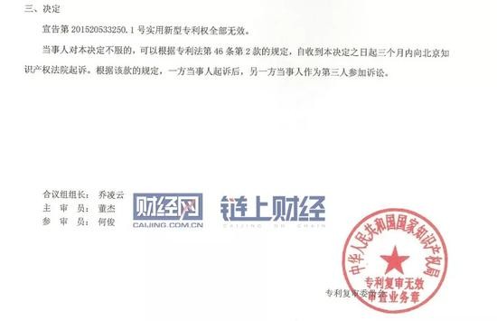 2018年4月12日,专利复审委员会作出了无效宣告请求审查决定书,该决定书宣告比特大陆第20152053325 0.1号实用新型专利权全部无效。