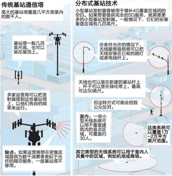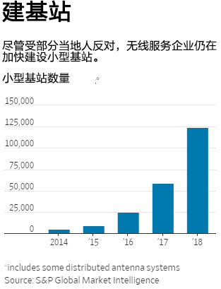 居民的反对一定程度上源于小型基站的工作方式。企业通常可以在私人土地上找到地方来安装大型基站铁塔,其覆盖范围达到几英里。而小型基站覆盖范围通常只有几百英尺,所以运营商需要架设更多基站,这往往需要占用公共土地。