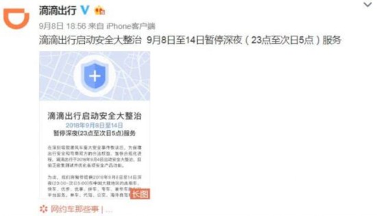 滴滴恶性事件接二连三地发生,引起了广大群众的热议。日前,滴滴发出公告,声明9月8日至14日暂停深夜(23点至次日5点)服务,出租车、快车、优步、优享、拼车、专车、豪华车服务皆包括在内。