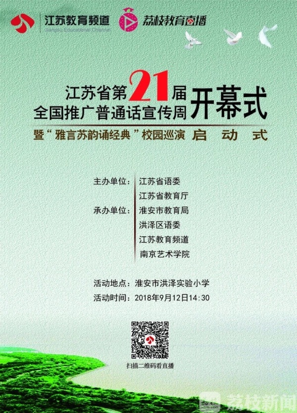江苏将以本届推普周为契机,继续深入宣传贯彻《国家通用语言文字法》以及江苏实施办法,增强全体公民的国家通用语言文字意识,努力营造语言文字工作的良好氛围,加大基层推普工作的力度。本次活动由江苏省语委、江苏省教育厅主办,江苏教育频道作为承办单位之一,对活动进行全程网络直播,见证了江苏省推广普通话领域的年度盛事。