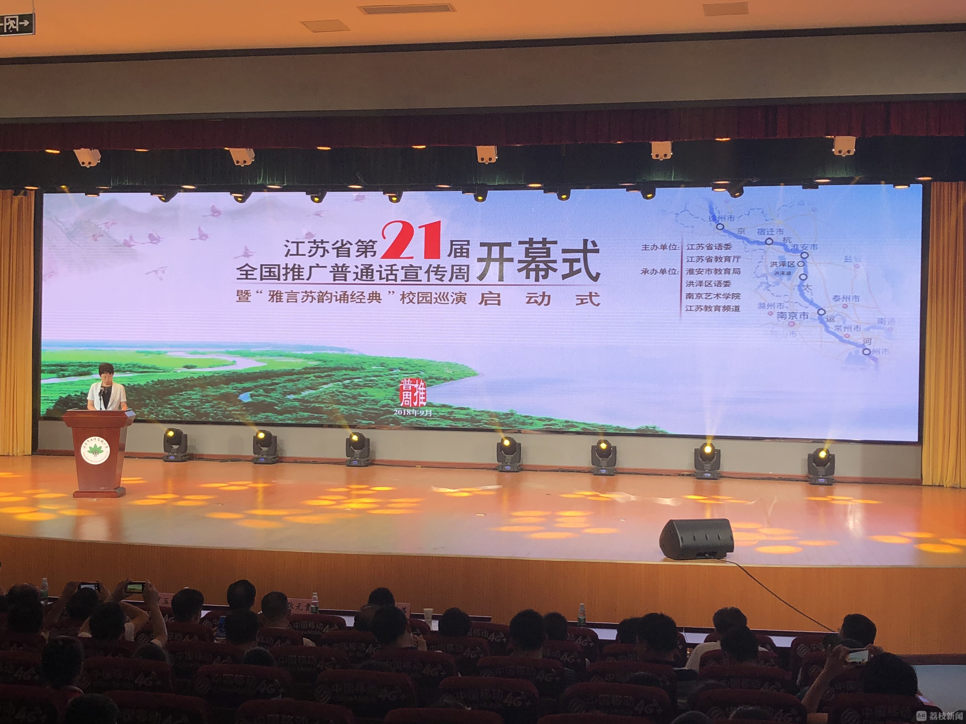 今天(9月12日)下午,江苏省第21届全国推广普通话宣传周开幕式暨“雅言苏韵诵经典”校园首场巡演在淮安市洪泽实验小学举行。本届推普周以“说好普通话,迈进新时代”为主题。开幕式上,举行了“雅言苏韵诵经典”校园首场巡演,江苏省昆剧院张争耀、南京艺术学院洪凌、李玮等青年演员和南京艺术学院师生参加了首场演出。