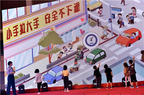 同时通过播放事故场景,解说事故诱发原因、陈述严重后果,进而引导学生识别交通违法、有奖竞答交通安全常识;同步依托“文明出行实验室”,建立学生头盔暂借登记点、推行学生家长交通违法反馈提醒制度,以及校门口文明交通劝导活动,深化“小手拉大手,安全不下课”教育主题。
