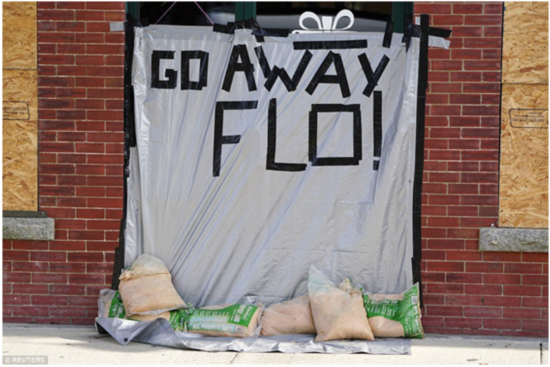 在佛罗伦萨可能经过的道路上,当地官员们敦促人们撤离沿海家园。北卡罗来纳州州长罗伊·库珀说:“呆在这里是在拿自己的生命冒险。不要等到开始下雨才离开。”