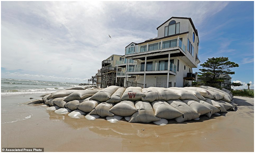 北卡罗来纳的沿海居民用沙袋环绕房子,为飓风到来做准备。
