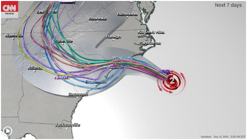 据报道,更糟糕的是,这场名为“佛罗伦萨”的飓风预计将盘旋在卡罗来纳上空,带来狂风暴雨,至少一直到周六都是如此。