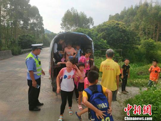9月12日,钦州交警三大队执勤民警深入辖区重点路段沿线学校开展护学及“黑校车”查处。当天下午17时左右,民警巡逻至省道218线路段时看见一辆机动三轮车里黑压压的挤满了背着书包的学生,立即将该车截停进行检查。