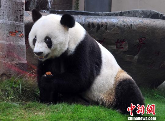 2017年1月18日,巴斯获最长寿圈养大熊猫世界纪录并庆生。(资料图片) 张丽君 摄