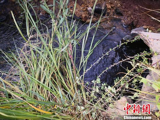 在走访中记者看到,矸石山西南角存有一个管道,管道内流水略显浑浊,水流沿河道流向附近一个水库。
