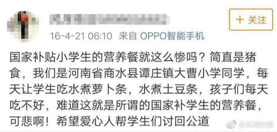 今天,一段曝光河南某小学营养午餐偷工减料的视频引爆了网络。而河南省官方现已调查认定,被曝光的是周口市商水县谭庄镇的大曹小学,该小学确实存在给学生提供的午餐缺斤短两的问题。不过,有网友发现该小学两年前就被人举报过营养餐有问题,并质疑为何今天才引起关注。