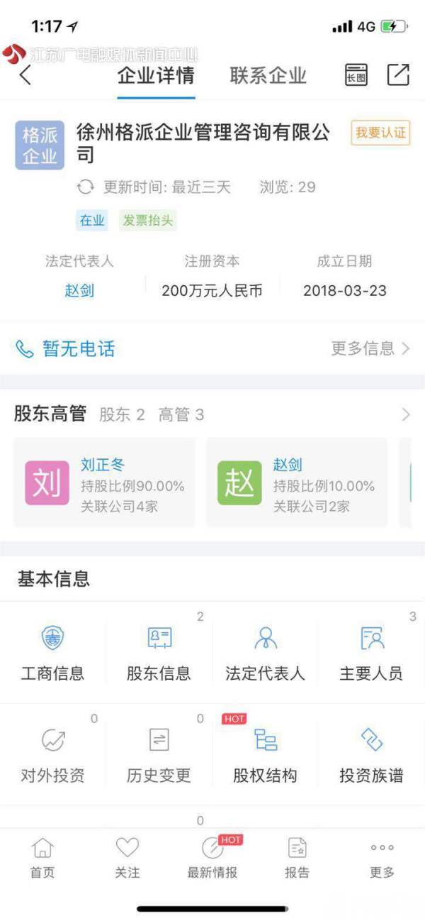 从2016年开始,多家公司将常州大学怀德学院的学生信息登记到江苏省网上税务局,并且以员工的名义虚假发放工资,记者调查发现其中有三家公司最为特殊,江苏宏鑫保险代理有限公司、徐州格派企业管理咨询有限公司和徐州睢通汽车服务有限公司,三家公司都位于徐州市睢宁县,法人代表或者股东中都有一个叫做赵剑的人。9月10日晚,赵剑承认,他控制的公司至少牵涉到常州大学怀德学院1700多个学生的个人信息,但这些信息并非他盗窃来的,也不是买来的。赵剑说,这个肯定不是通过黑客从学校拿的,肯定是从学校出来的,别人买没买不他知道,但是他企业肯定不是买的,他们总共有一千六七百个学生信息,别的公司可能也是从他们公司转过去的。