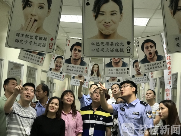 今天(9月13日)上午,南京市公安局经济技术开发区分局举行“防范通讯网络诈骗”宣传周进企业活动。在开发区内一家大型韩资企业的活动现场,由民警设计制作的防诈扑克牌成为此次宣传周最大亮点。
