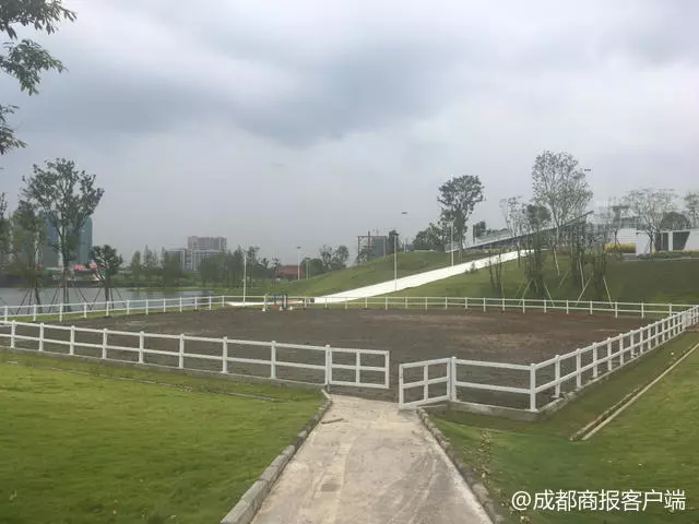 记者在该马术俱乐部内的马场看到,工作人员所说的这片马场周围设置了白色的围栏,围栏上有一道小门,出了这个马场,正好就是连接俱乐部与天府大道南延线的一条水泥路。