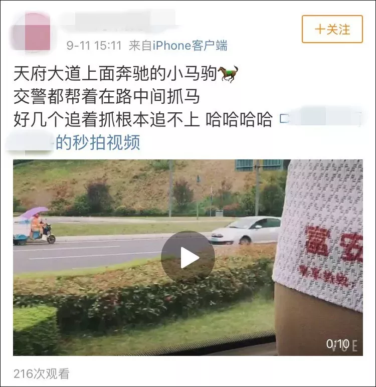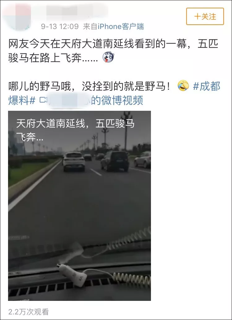 9月11日,一段成都天府大道南延线上群马奔跑的视频,火爆网络。