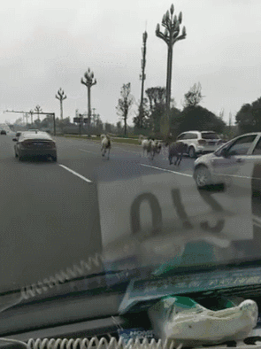 网友拍到的视频中,数匹毛色各异的马儿,顺着天府大道南延线,混迹在车流中一路狂奔,因占用了一条行车道,后方的车辆也放慢了速度,从旁边避让。