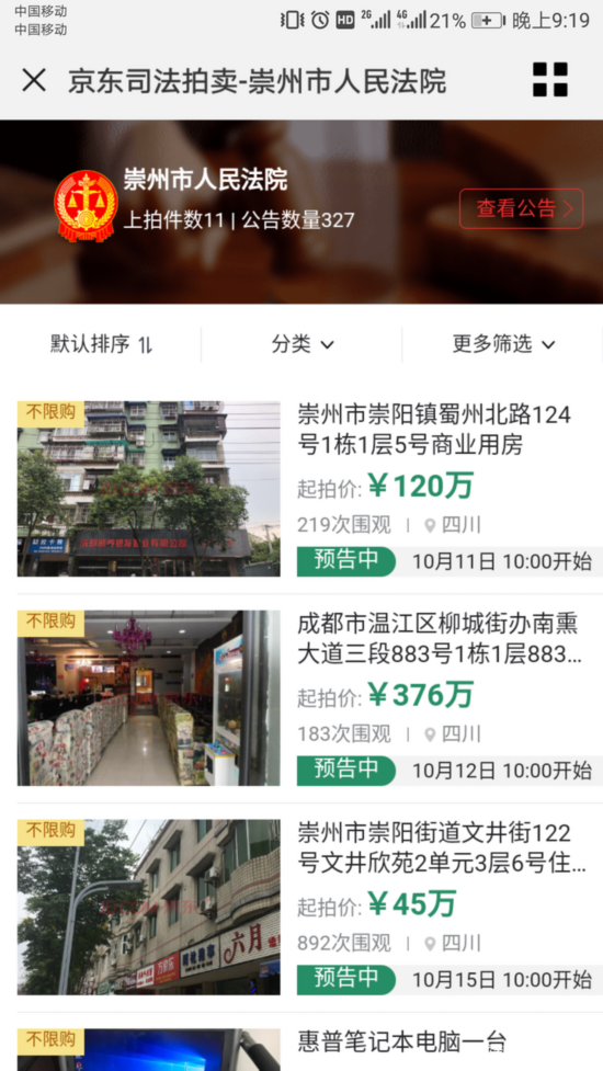 9月13日,记者从崇州法院获悉,该院首次通过当事人议价方式,确定了一处在京东司法拍卖平台拍卖的商业用房的起拍价。