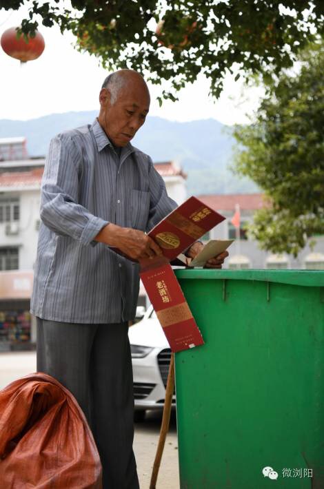 从张坊镇茶林村九老桥组到张坊集镇,两公里路程,无论寒暑,只要不下暴雨,朱自明每天都要来回走上两趟。路边的烟盒、废纸、矿泉水瓶都被他收入随身携带的红色塑料袋中。