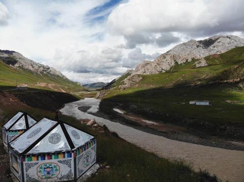 “彩色帐篷”——垃圾转运站,与三江源美景相映成趣。 人民网记者 余璐摄
