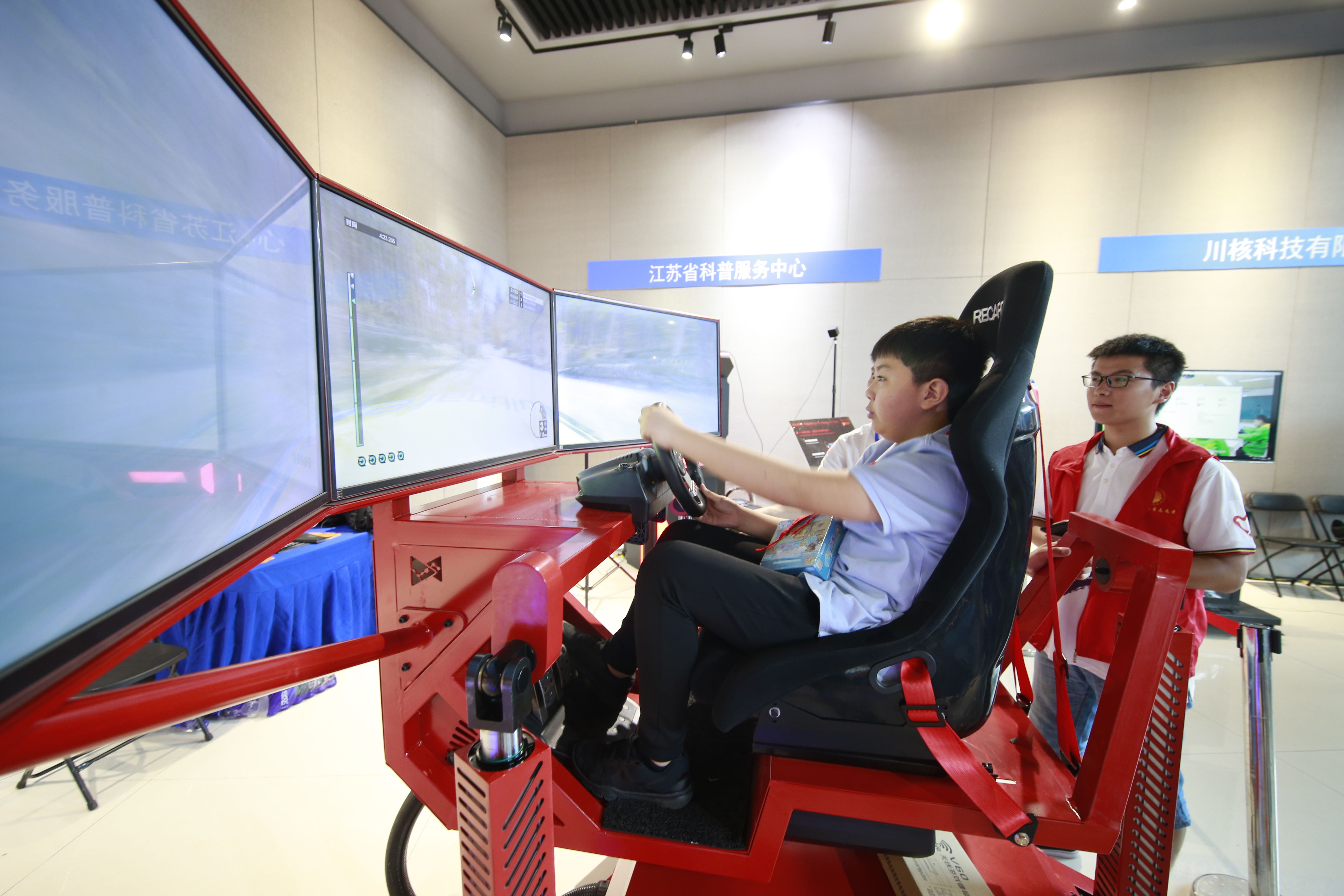江苏省主场活动设在南京河西的“江苏科技工作者活动中心”,现场自然少不了机器人等大型设备,但是更吸引青少年的,显然是各种VR体验项目。