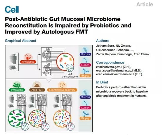 结果发现,服用(自己的)粪菌的人菌群恢复最快,而服用益生菌的人恢复得最慢。但原有菌群结构恢复慢这一结果,也不能等同于益生菌对人体有害。