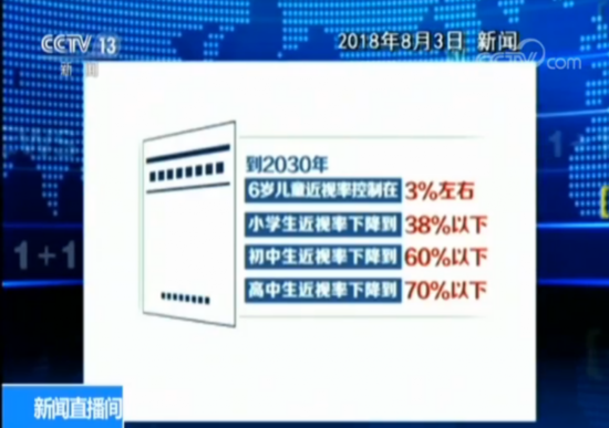 到2030年,6岁儿童近视率控制在3%左右,小学生近视率下降到38%以下,初中生近视率下降到60%以下,高中生近视率下降到70%以下。