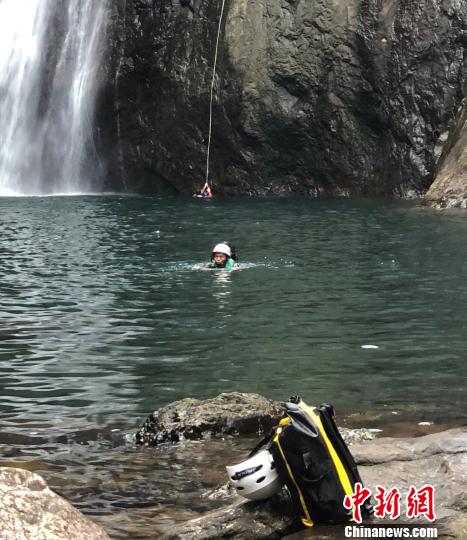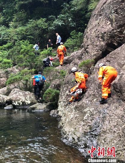 17名福建泉州驴友受困闽侯县十八重溪,消防员和民警迅速展开搜救。 倪仕忠 摄