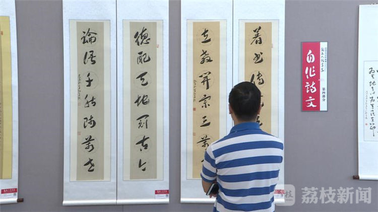 荔枝新闻记者了解到,这次展览主要是有三个特点:第一从内容上来说,都是章剑华自创的诗文;第二则是根据荔枝美术馆的特点,章剑华创作了一些小型、比较精致的作品;第三,展览全部用“章草”这种书体来创作的。