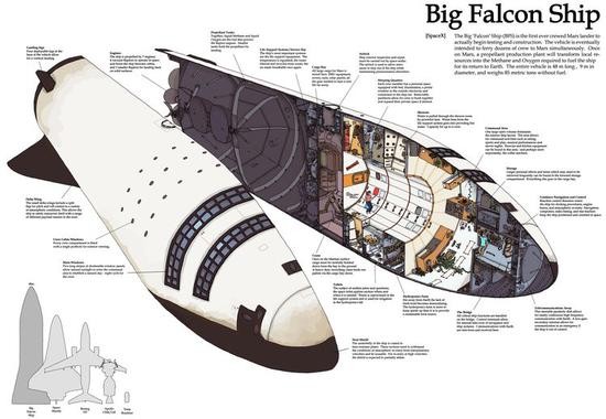 众所周知,马斯克的最终目标是完成“火星任务”,即送人类上火星。作为该任务的一部分,他在2016年首次提出研发BFR,BFR系统由两个部分组成:一个巨大的火箭助推器和一个可以容纳数十名乘客的宇宙飞船。