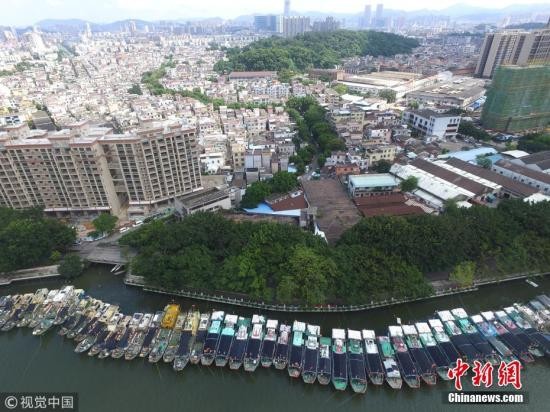 9月13日,中山市石岐河张溪段,大量渔船回港避风。 图片来源:视觉中国